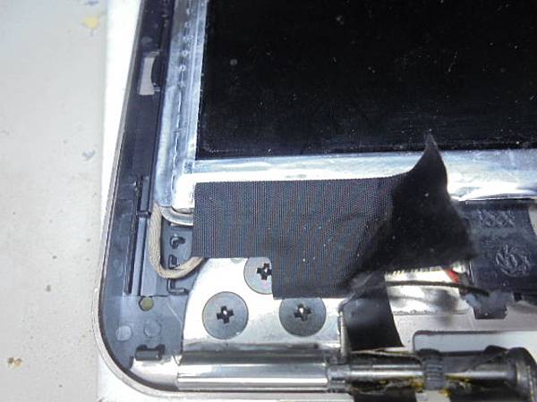 Acer宏碁S3-391 MS2346→超極致筆電使用中忽然變為白屏無法正常顯示~外接投影機可正確顯示→要修好螢幕異常~纏繞轉軸的原廠螢幕排線→新北市板橋區-林先生【尚不知怎麼做拆除】