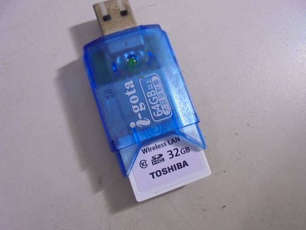 TOSHIBA東芝SDHC 32GB FlashAir→記憶卡在相機拍攝後~以無線傳輸到手機→突斷線後少了檔案~已救回旅遊照片→讀卡機通電綠燈~臺北市中山區-李小姐【停止後已由亮轉滅】 TOSHIBA東芝SDHC 32GB FlashAir→記憶卡在相機拍攝後~以無線傳輸到手機→突斷線後少了檔案~已救回旅遊照片→記憶卡由讀卡機拔出~臺北市中山區-李小姐【檢視正面外觀】