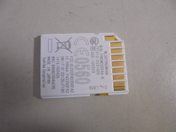 TOSHIBA東芝SDHC 32GB FlashAir~記憶卡在相機拍攝後→以無線傳輸到手機~突斷線後少了檔案→已救回旅遊照片~翻至記憶卡背面→臺北市中山區-李小姐【製造商印有相關資訊】