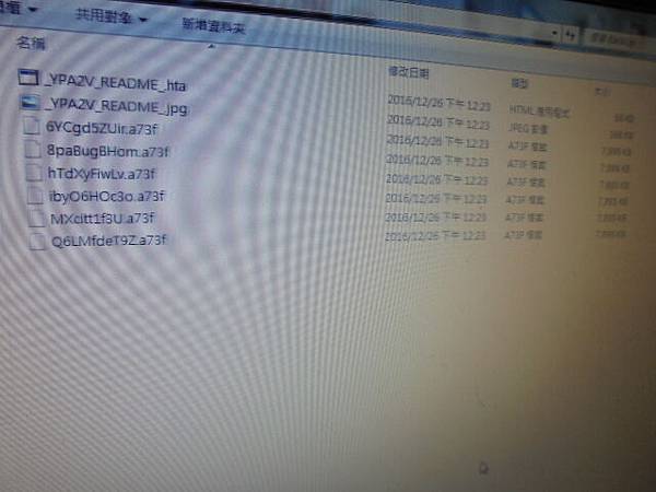 TOSHIBA東芝1TB~3.5吋硬碟組裝電腦→中CERBER綁架勒索病毒~檔名變亂碼→副檔名被加註A73F~要救回進銷存檔案→文字檔案說明~桃園市中壢區-阮先生【簡體中文.TXT檔案】