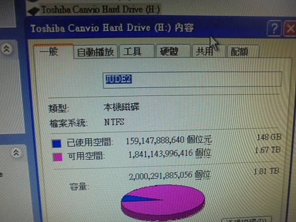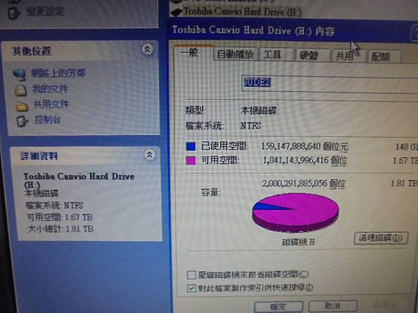 BUFFALO巴比祿HD-PZU3 1TB USB 3.0~隨身硬碟連接電腦複製檔案→出現未格式化視窗~已救回重要檔案資料→檔案複製完成→新北市板橋區-張小姐【檢視硬碟已使用空間╱可用空間】