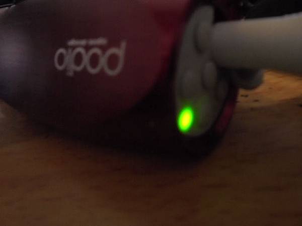 PODIO百剛BA-205 2GB→MP3隨身音樂棒沒電做充電~但是充電一整晚仍是亮紅燈→按電源鍵也開不了機~想修好音樂棒→音樂棒頂端的指示燈號~新北市新莊區-王先生【顯示為綠燈直亮】