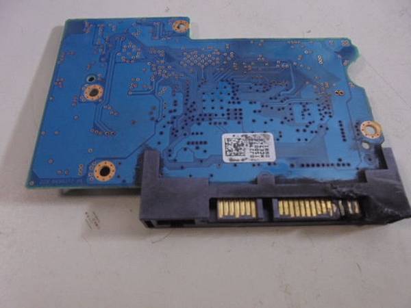 TOSHIBA東芝1TB SATA 3.5吋~硬碟接在電腦→電源供應器接線莫名自燃~SATA接座燒毀熔化無法使用→要救回照片檔案~檢視電路板側面接座位置→新北市新店區-陳先生【接座拆解評估】
