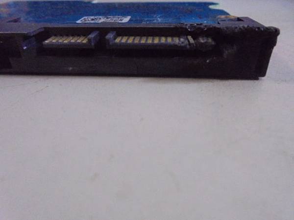 TOSHIBA東芝1TB SATA 3.5吋~硬碟接在電腦→電源供應器接線莫名自燃~SATA接座燒毀熔化無法使用→要救回照片檔案~檢視電路板側面接座位置→新北市新店區-陳先生【接座拆解評估】