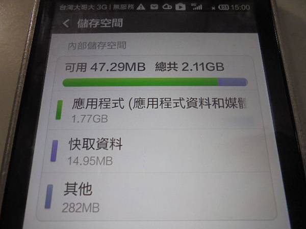 Xiaomi小米-紅米4GB→智慧型手機存有很多照片~今天不知原因找不到照片→照片資料夾全數消失~要救回狗狗的照片檔案→離開相機功能回到手機桌面→新北市永和區-林小姐【點進設定儲存空間】