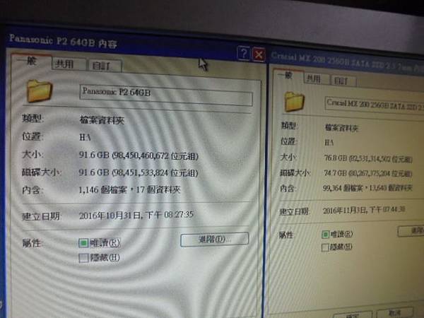 Panasonic松下P2 HD記憶卡64GB~攝影機拍攝後接讀卡機存到電腦→複製過程中檔案無故消失~要救回MXF影像檔案→兩個裝置的救回資料夾容量數量~新竹市北區-彭先生【螢幕上做比對】