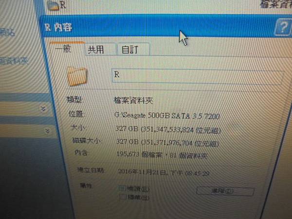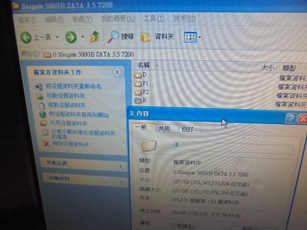 Seagate希捷500GB~組裝電腦使用硬碟→中CERBER綁架勒索病毒~檔名變亂碼副檔名加註.BBAD→已救回照片與文件檔案~資料夾數量與容量→臺北市內湖區-邱先生【P2亦為照片影片】