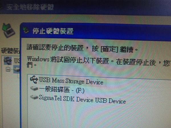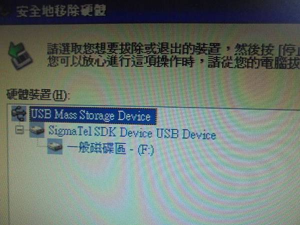 PODIO百剛BA-205 2GB→MP3隨身音樂棒沒電做充電~但是充電一整晚仍是亮紅燈→按電源鍵也開不了機~想修好音樂棒→安全地移除硬體~新北市新莊區-王先生【停止硬體裝置╱一般磁碟區F】
