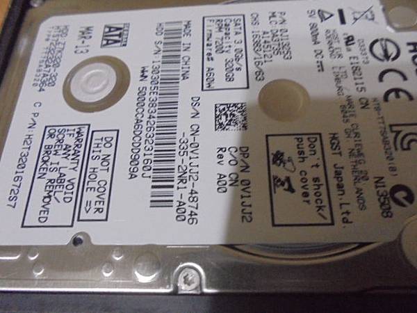 HGST昱科320GB→硬碟為筆記型電腦資料碟~中綁架勒索病毒→檔名後面加註病毒ID~副檔名被加註Onion→要救回工程圖檔~拆開硬碟保護蓋~桃園市龜山區-陳先生【檢視HGST硬碟正面與反面】