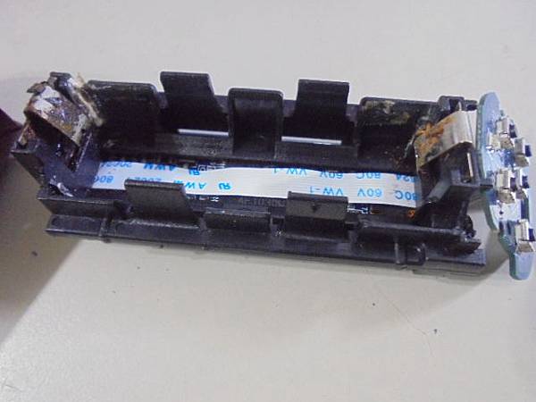 PODIO百剛BA-205 2GB~MP3隨身音樂棒沒電做充電→但是充電一整晚仍是亮紅燈~按電源鍵也開不了機→想修好音樂棒~檢視電池座正極與負極彈片→新北市新莊區-王先生【金屬彈片亦銹蝕嚴重】 PODIO百剛BA-205 2GB→MP3隨身音樂棒沒電做充電~但是充電一整晚仍是亮紅燈→按電源鍵也開不了機~想修好音樂棒→檢視原廠電池正極負極接點~新北市新莊區-王先生【接點已部份嚴重銹蝕】