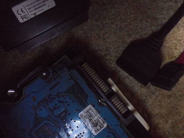 TOSHIBA東芝1TB 3.5吋→硬碟接在電腦~電源供應器接線莫名自燃→SATA接座燒毀熔化無法使用~已修好接座救回照片檔案→拔下USB傳輸線~新北市新店區-陳先生【拉出SATA電源訊號線】