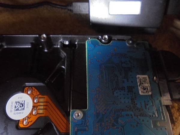 TOSHIBA東芝1TB 3.5吋~硬碟接在電腦→電源供應器接線莫名自燃~SATA接座燒毀熔化無法使用→已修好接座救回照片檔案~再將訊號線端→新北市新店區-陳先生【插上電腦USB 2.0接座】
