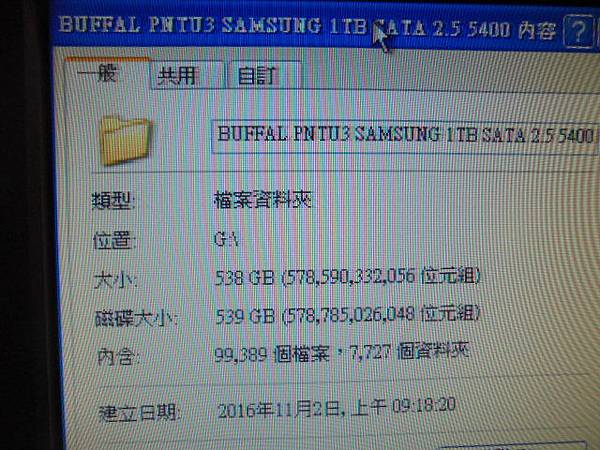 BUFFALO巴比祿HD-PNTU3~隨身硬碟的USB 3.0接座扯壞掉落→導致無法通電與讀取~已救回硬碟裏的檔案資料→檔案資料夾容量數量~臺北市萬華區-紀先生【539GB╱99389個檔案】