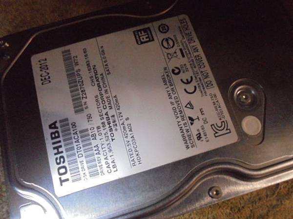 TOSHIBA東芝1TB 3.5吋~硬碟接在電腦→電源供應器接線莫名自燃~SATA接座燒毀熔化無法使用→已修好接座救回照片檔案~外接盒之目的→新北市新店區-陳先生【旨在防止SATA接座再折損】