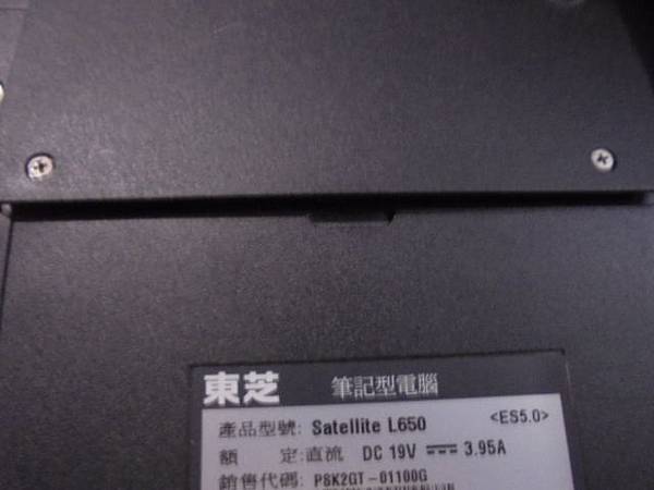 TOSHIBA東芝L650~筆記型電腦先前皆正常使用→忽然開機讀不到硬碟~亦進不了作業系統→想要解決問題與修好繼續做使用~關機後翻至背面→臺北市哈密街-阮先生【原廠標籤標示品牌型號與製造年份】