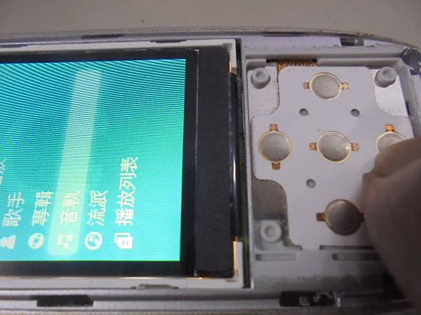 SAMSUNG三星YP-T9 2GB~MP4已經使用多年→感覺所有功能按鍵都不靈敏~按下時都沒有動作→想修好MP4繼續做使用~取下感應壓片→新北市中和區-游先生【以指甲按上鍵與下鍵功能皆正確】