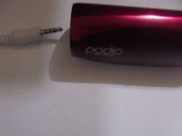 PODIO百剛BA-205 2GB~MP3隨身音樂棒沒電做充電→但是充電一整晚仍是亮紅燈~按電源鍵也開不了機→已修好音樂棒~備妥白色耳機充電線→新北市新莊區-王先生【準備插入耳機孔做充電測試】