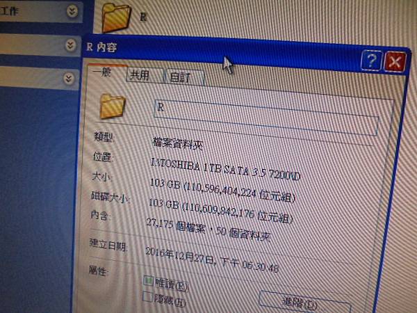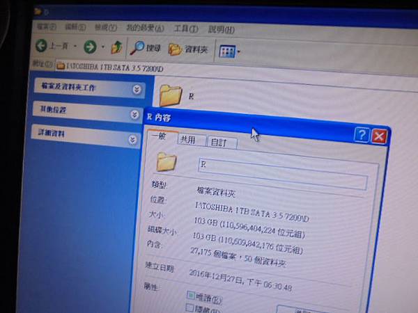 TOSHIBA東芝1TB~3.5吋硬碟組裝電腦→中CERBER綁架勒索病毒~檔名變亂碼→副檔名被加註A73F~要救回進銷存檔案→計算檔案已經救出的容量與數量~桃園市中壢區-阮先生【103GB】