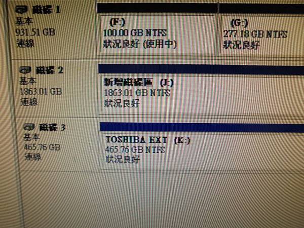【更換硬碟】HP惠普Compaq康柏421筆記型電腦HSTNN-185C-4→NB使用多年感覺開機關機速度都變慢~筆電的使用效能也變差→要更換成SSD固態硬碟提升速度與效能~滑鼠點進存放裝置磁碟管理→新北產業園區-陳先生【磁碟區(G:)(K:)檔案系統正確】