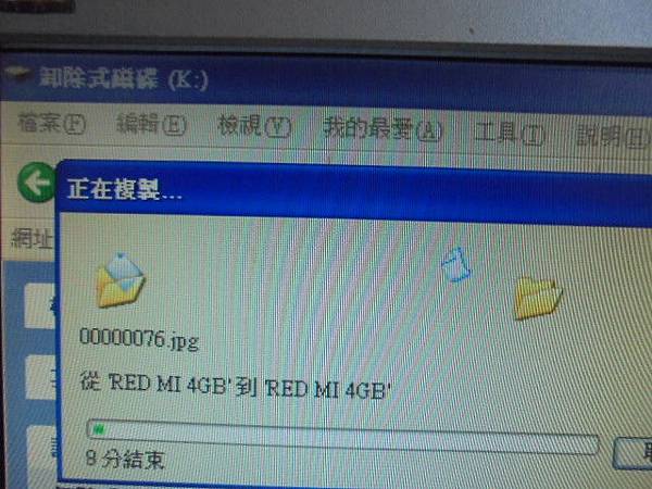 Xiaomi小米-紅米4GB→智慧型手機存有很多照片~不知原因找不到照片→DCIM資料夾全數消失~已救回狗狗的照片檔案→卸除式磁碟K資料夾檔案正在複製8分結束~新北市永和區-林小姐【8分結束】 Xiaomi小米-紅米4GB~智慧型手機存有很多照片→不知原因找不到照片~DCIM資料夾全數消失→已救回狗狗的照片檔案~救回的資料夾滑鼠點左鍵編輯╱全選╱複製→新北市永和區-林小姐【左鍵貼上】