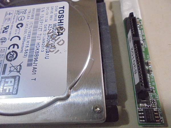 BUFFALO巴比祿HD-PNTU3→1TB隨身硬碟的USB 3.0接座扯壞掉落~導致無法通電與讀取→要救回硬碟裏的檔案資料~TOSHIBA東芝裸碟→桃園市桃園區-彭先生【拔下原廠轉接電路板】