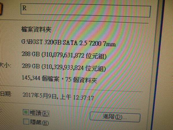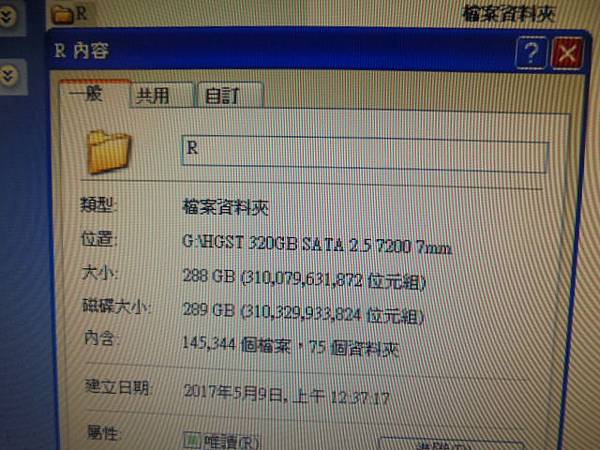 HGST昱科320GB→硬碟為筆記型電腦資料碟~中綁架勒索病毒→檔名加註病毒ID~副檔名被加註Onion→已救回檔案資料~救出的R資料夾→桃園市龜山區-陳先生【145344個檔案75個資料夾】