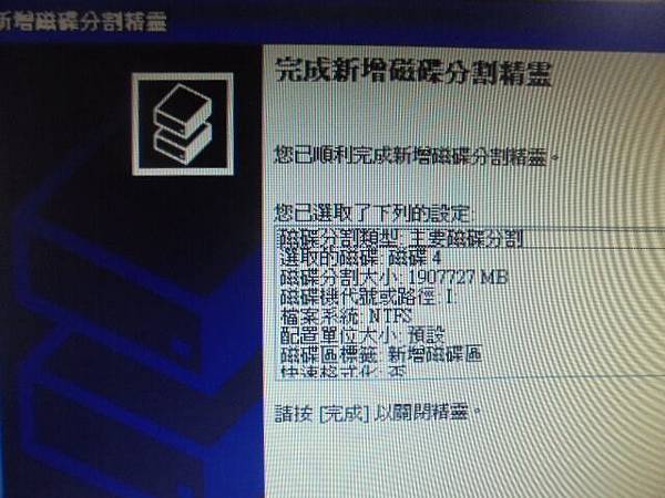 Panasonic松下P2 HD記憶卡64GB→攝影機拍攝後接讀卡機存到電腦~複製過程中檔案無故消失→已救回MXF影像檔案~主要磁碟分割P→新竹市北區-彭先生【指派磁碟機代號或路徑磁碟代號I】 Panasonic松下P2 HD記憶卡64GB→攝影機拍攝後接讀卡機存到電腦~複製過程中檔案無故消失→已救回MXF影像檔案~新硬碟磁碟4基本連線→新竹市北區-彭先生【1863.01GB格式化】