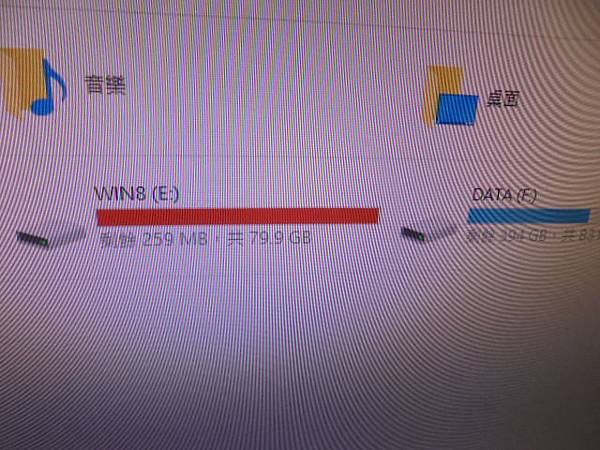 ASUS華碩ET2410INTS~All-in-One PC原廠搭載硬碟→感覺讀取運轉過慢~已改為SSD固態硬碟提升效能→2顆硬碟4個磁碟區使用比例~新北市三重區-楊先生【剩餘空間╱可用空間】