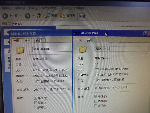 Xiaomi小米-紅米4GB~智慧型手機存有很多照片→不知原因找不到照片~DCIM資料夾全數消失→已救回狗狗的照片檔案~救出的照片已經複製完成→新北市永和區-林小姐【比對兩邊檔案的數量與容量】