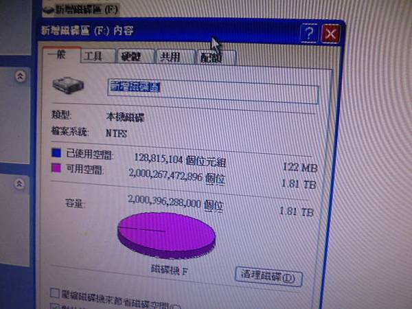 Seagate希捷1TB→組裝電腦使用硬碟~中勒索綁架病毒→檔名變亂碼副檔名加註CERBER3~要救回照片與影片檔案→新增磁碟區F本機磁碟~新北市板橋區-王先生【NTFS可用空間1.81TB】
