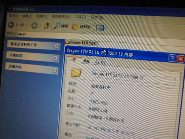 Seagate希捷1TB→組裝電腦使用硬碟~中勒索綁架病毒→檔名變亂碼副檔名加註CERBER3~要救回照片與影片檔案→新增磁碟區F本機磁碟~新北市板橋區-王先生【NTFS可用空間1.81TB】
