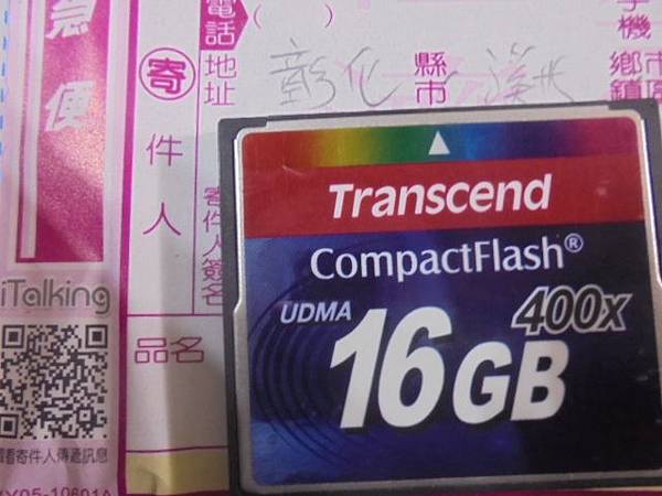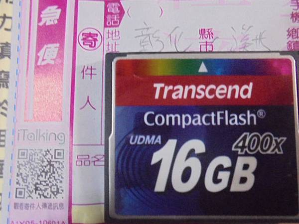 Transcend創見CF→16GB記憶卡在Canon佳能5DII相機拍攝~以MacBook讀取卻變RAW→要救回婚禮CR2照片~創見CF記憶卡400X→彰化縣溪州鄉-陳先生【宅配單填寫的寄出地】