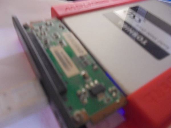 Seagate希捷1TB→組裝電腦使用硬碟~中勒索綁架病毒→檔名變亂碼副檔名加註CERBER3~要救回照片與影片檔案→TOSHIBA東芝SSD固態硬碟拆封~新北市板橋區-王先生【扣進紅色轉接架】