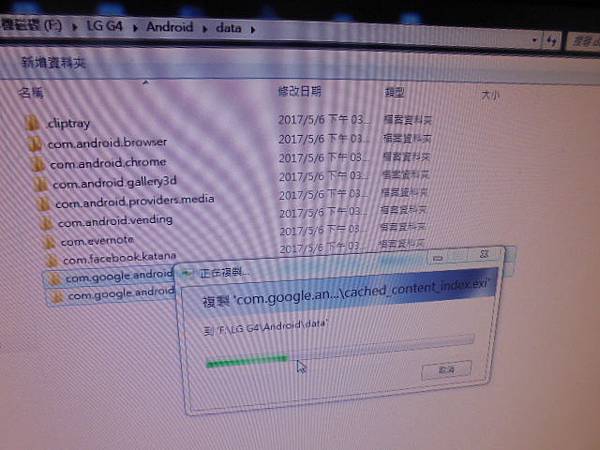 LG樂金G4 H815 32GB→智慧型手機無法進入Android系統~開機畫面卡住不動→已救回內建記憶體的工作與家人照片~正在複製→新北市三重區-謝先生【複製檔案到Android╲data】