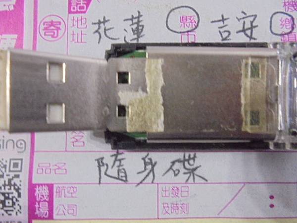 SanDisk新帝Cruzer Crossfire→2GB隨身碟插桌上型電腦讀取~不慎撞到USB接頭歪斜無法使用→要救回隨身碟裏檔案~包裹中取出撞壞的隨身碟→花蓮縣吉安鄉-羅小姐【宅急便宅配單品名】