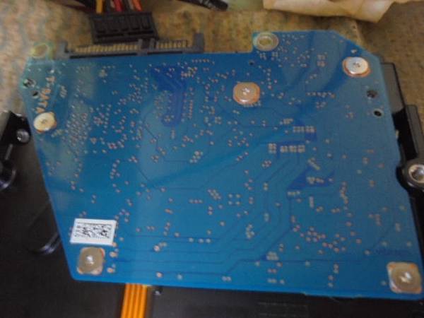 TOSHIBA東芝4TB 3.5吋→硬碟接在電腦~忘記訊號線有壓扣→拉出時不慎扯斷SATA接座導致無法讀取~更換全新的代用接座→已完修的電路板~臺北市萬華區-黃先生【翻至背面且對準5個螺絲孔位】