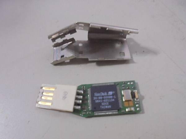 SanDisk新帝Cruzer Crossfire→2GB隨身碟插桌上型電腦讀取~不慎撞到USB接頭歪斜無法使用→要救回隨身碟裏的檔案~隨身碟電路板→花蓮縣吉安鄉-羅小姐【由撞歪的原廠金屬殼中取出】