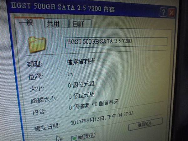 HGST昱科500GB SATA→7mm硬碟裝在ASUS華碩筆記型電腦~忽然開機讀不到硬碟→華碩判定硬碟讀取異音~要救回圖檔交稿→新增資料夾~新北市中和區-盛小姐【是以硬碟品牌容量介面尺寸轉速做為命名】