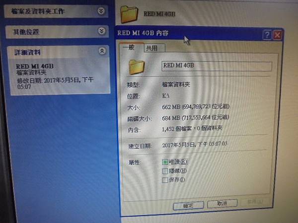 Xiaomi小米-紅米4GB→智慧型手機存有很多照片~不知原因找不到照片→DCIM資料夾全數消失~已救回狗狗的照片檔案→比對OTG與硬碟兩邊照片數量容量正確~新北市永和區-林小姐【1452個檔案】