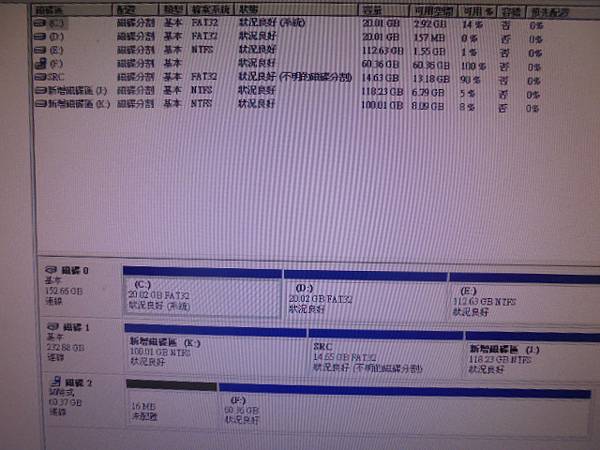 【再送救援】Seagate希捷500GB→acer筆記型電腦出廠搭載2.5吋裸碟~忽然開機無法進入系統→自行拆出裸碟當外接碟讀不到兩個分割磁區~要救出D槽的重要檔案資料→滑鼠點進存放磁碟管理~新北市土城區-連先生【磁碟區(F:)(G:)(H:)4個切割區】