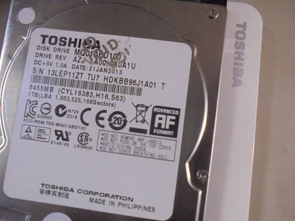 BUFFALO巴比祿HD-PNTU3→1TB隨身硬碟的USB 3.0接座扯壞掉落~導致無法通電與讀取→已救回硬碟裏的所有檔案~電腦關機後拔下東芝1TB裸碟→桃園市桃園區-彭先生【與新東芝外接硬碟】