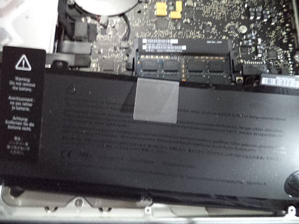 Apple蘋果MacBook Pro~A1278筆記型電腦→不知原因原廠電池自行膨脹鼓起~頂到外殼已變形→必需更換原廠電池後繼續使用~緊扣在主機板位置的原廠BATTERY排扣→新北市板橋區-薛先生【亦將之拔除】 Apple蘋果MacBook Pro~A1278筆記型電腦→不知原因原廠電池自行膨脹鼓起~頂到外殼已變形→必需更換原廠電池後繼續使用~原廠電池已拔離原本固定位置→新北市板橋區-薛先生【主機板周邊瞬時感覺很空洞】