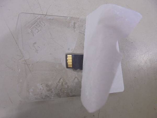 LG樂金G4 H815→32GB智慧型手機無法進入Android系統~開機畫面卡住不動→已救回內建記憶體的工作與家人照片~撕開原廠透明罩密封的紙→新北市三重區-謝先生【倒出記憶卡本體於桌面】