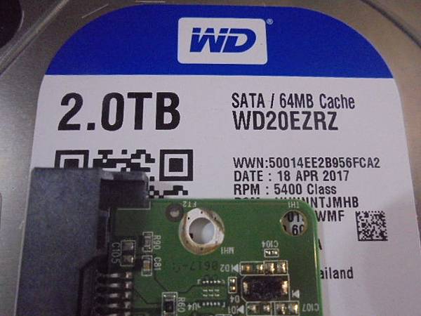WD威騰3.5吋BLUE→2TB硬碟接在硬碟座連接電腦USB使用~電源變壓器發出奇怪聲音後→硬碟就無法讀取~要救回硬碟裏的檔案資料→目視硬碟電路板上的其他零件~新北市泰山區-簡先生【看似無任何損傷或燒毀】