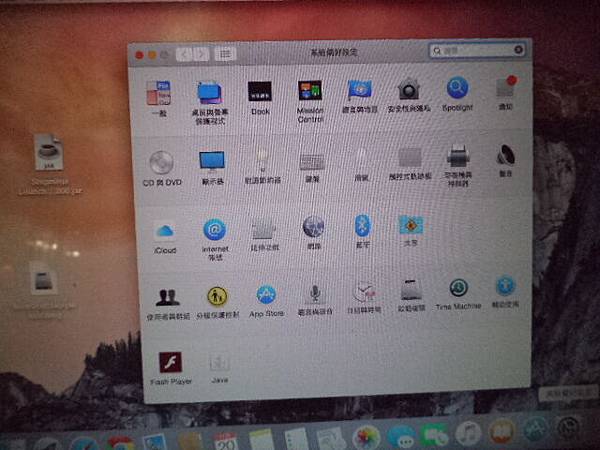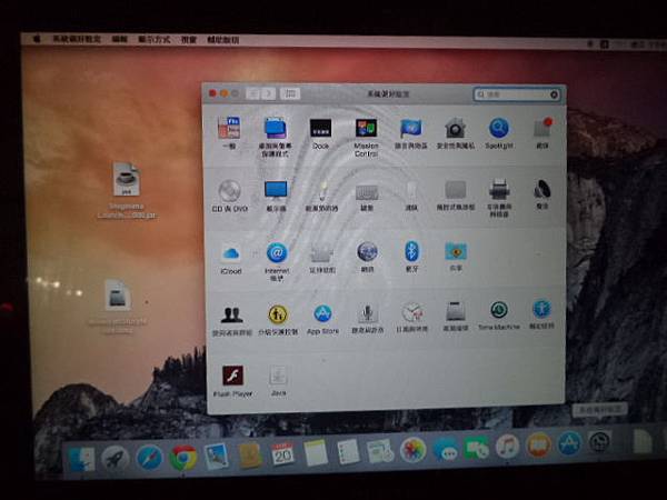 Apple蘋果MacBook Pro→A1278筆記型電腦~不知原因原廠電池自行膨脹鼓起→頂到外殼已變形~必需更換原廠電池後繼續使用→壓下電源鍵開機進入OS X作業系統~新北市板橋區-薛先生【點進系統偏好設定】