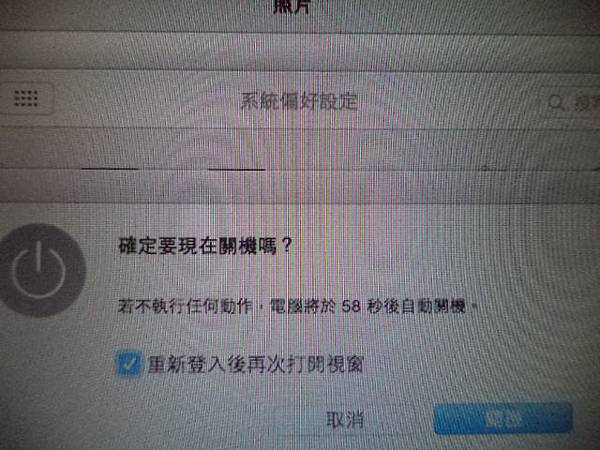 Apple蘋果MacBook Pro~A1278筆記型電腦→不知原因原廠電池自行膨脹鼓起~頂到外殼已變形→已經更換原廠電池後正常使用~游標滑至關機→新北市板橋區-薛先生【確定要現在關機嗎?電腦將於58秒後自動關機】