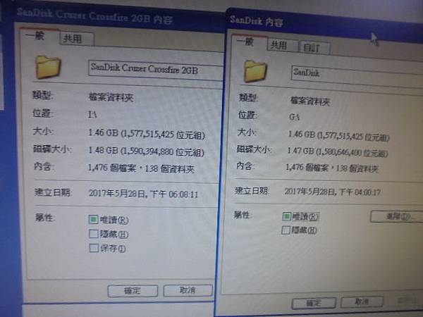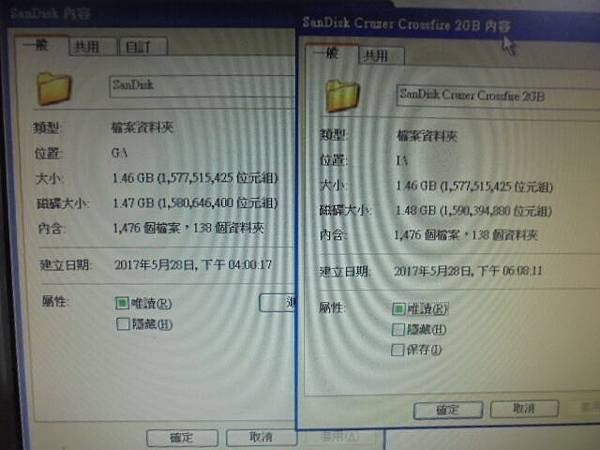 SanDisk晟碟Cruzer Crossfire~2GB隨身碟插桌上型電腦讀取→不慎踢壞USB接頭歪斜而無法使用~已救回隨身碟裏的資料→比對硬碟裏與隨身碟中兩邊資料夾~花蓮縣吉安鄉-羅小姐【檔案資料數量容量相同】