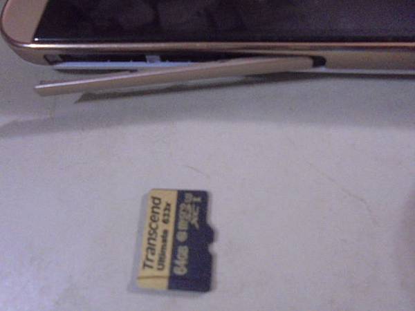 HTC宏達電E9 Plus~32GB智慧型手機→測試Google手機定位追蹤功能~誤觸遠端清除手機資料與遠端恢復原廠設定→要救回相片影片~拉出手機左側蓋條→新北市林口區-楊先生【SDXC記憶卡準備置進記憶卡插槽】