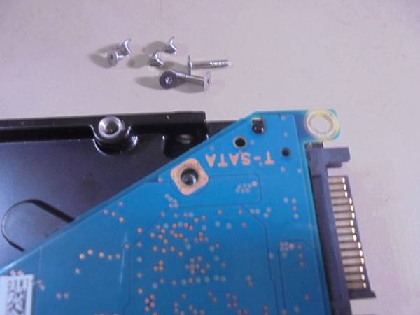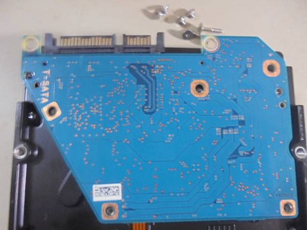 TOSHIBA東芝4TB→3.5吋硬碟接在電腦~不慎折斷SATA訊號7Pin接座而無法讀取→自己嘗試焊接但焊不起來~更換代用接座繼續使用→電腦關機後拆下硬碟接線~新北市中和區-陳先生【翻至背面鬆開7顆星形螺絲】