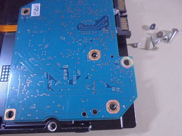 TOSHIBA東芝4TB→3.5吋硬碟接在電腦~不慎折斷SATA訊號7Pin接座而無法讀取→自己嘗試焊接但焊不起來~更換代用接座繼續使用→星形起子鎖緊原廠全部螺絲~新北市中和區-陳先生【2根長螺絲5根短螺絲】